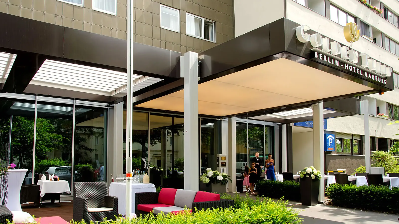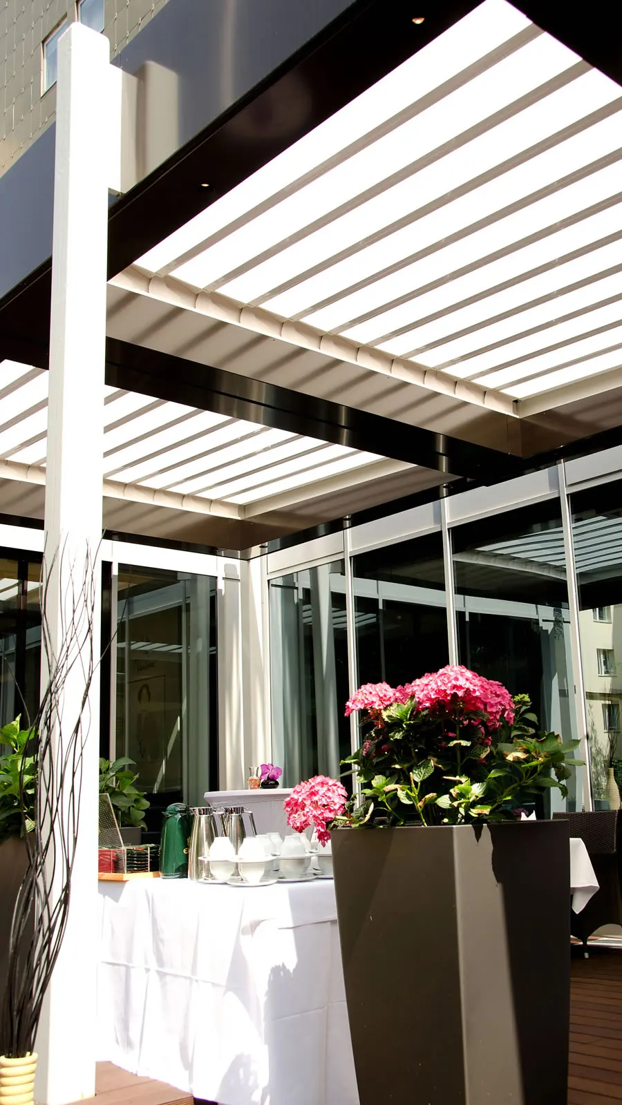 Außenbereich - Lamellendach am Hotel Golden Tulip Hamburg in Berlin.
