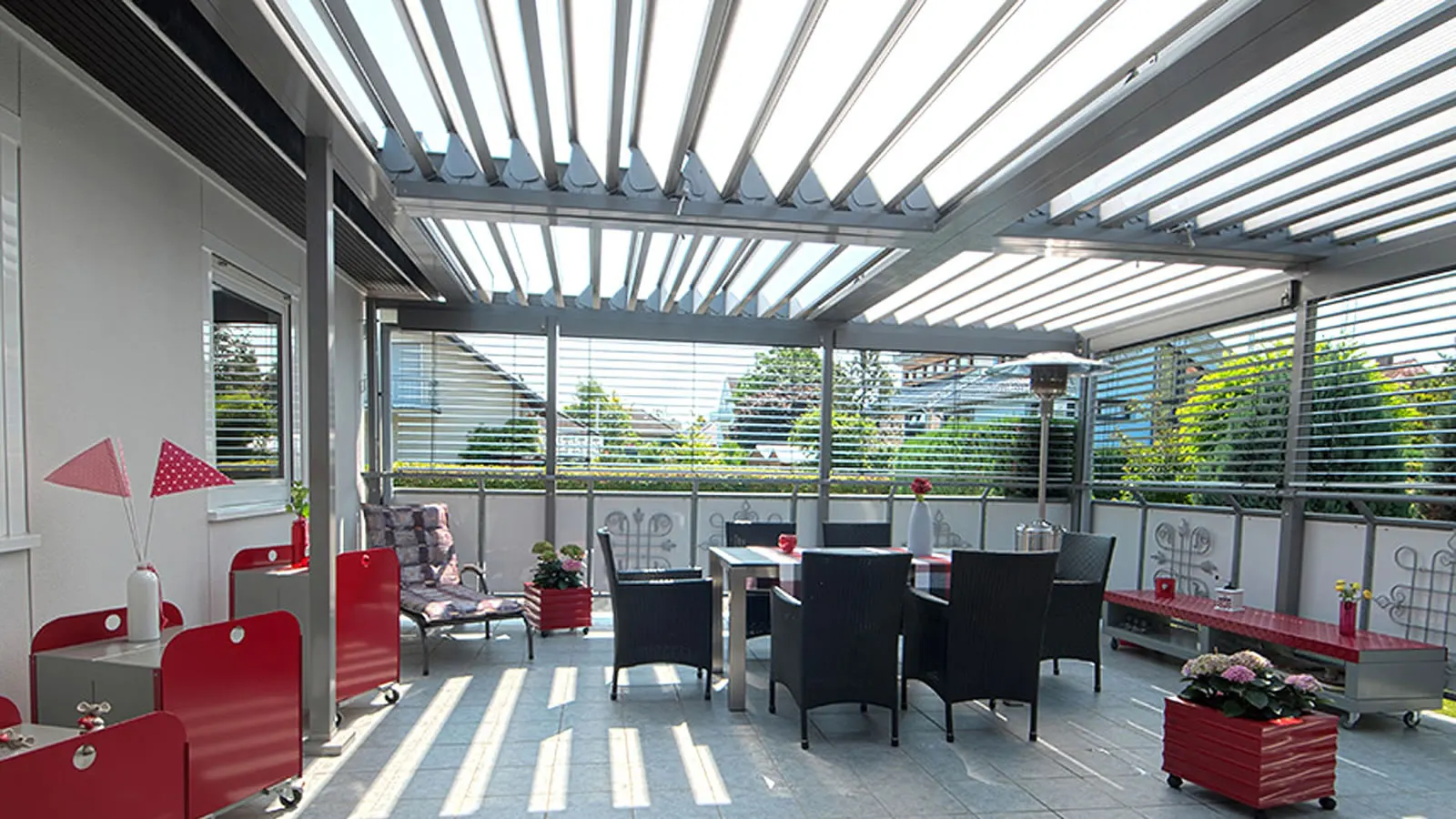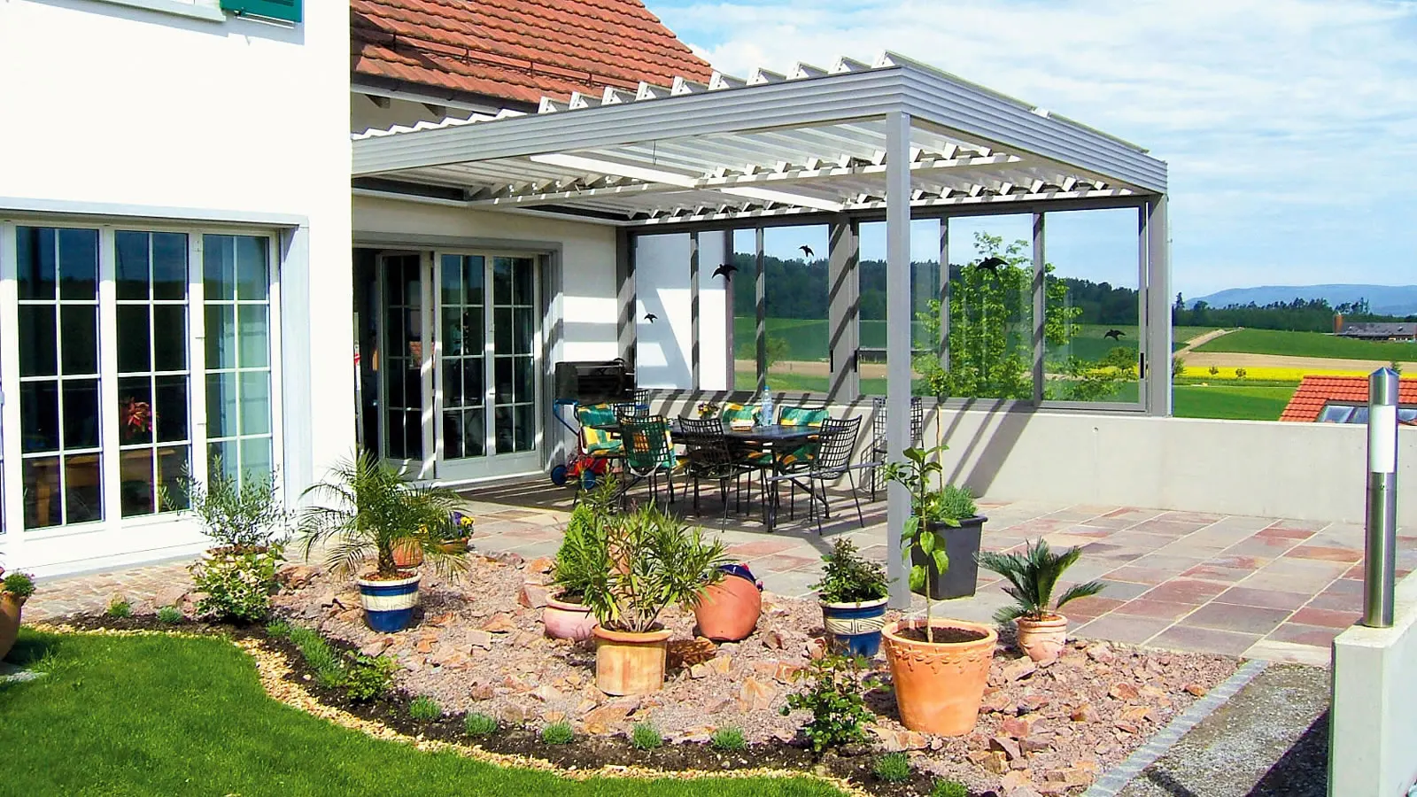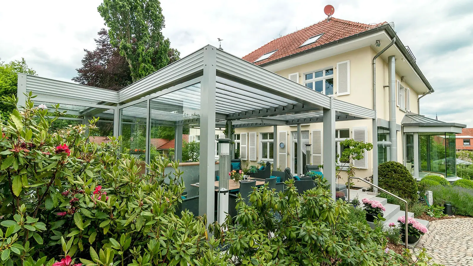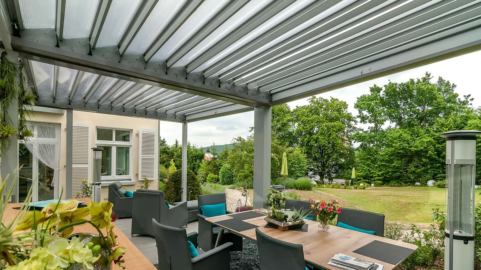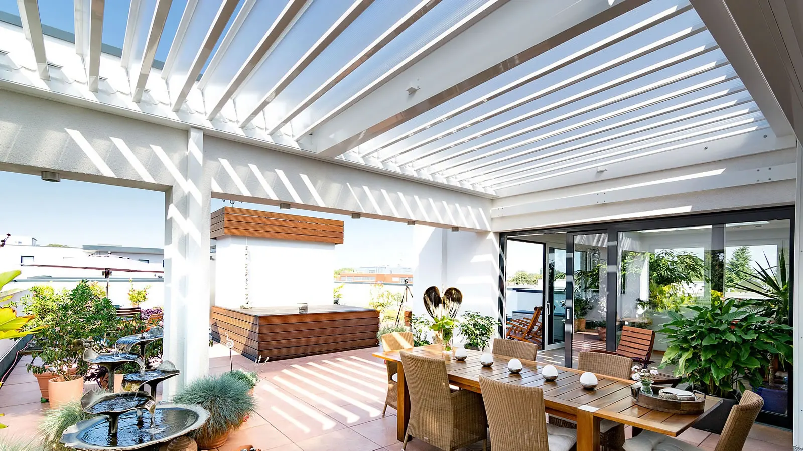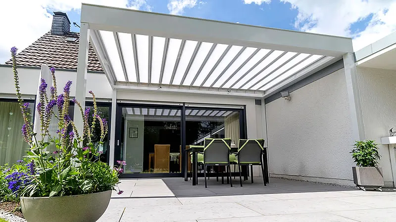 Ein winterfestes Lamellendach ist 12 Monate im Jahr nutzbar.