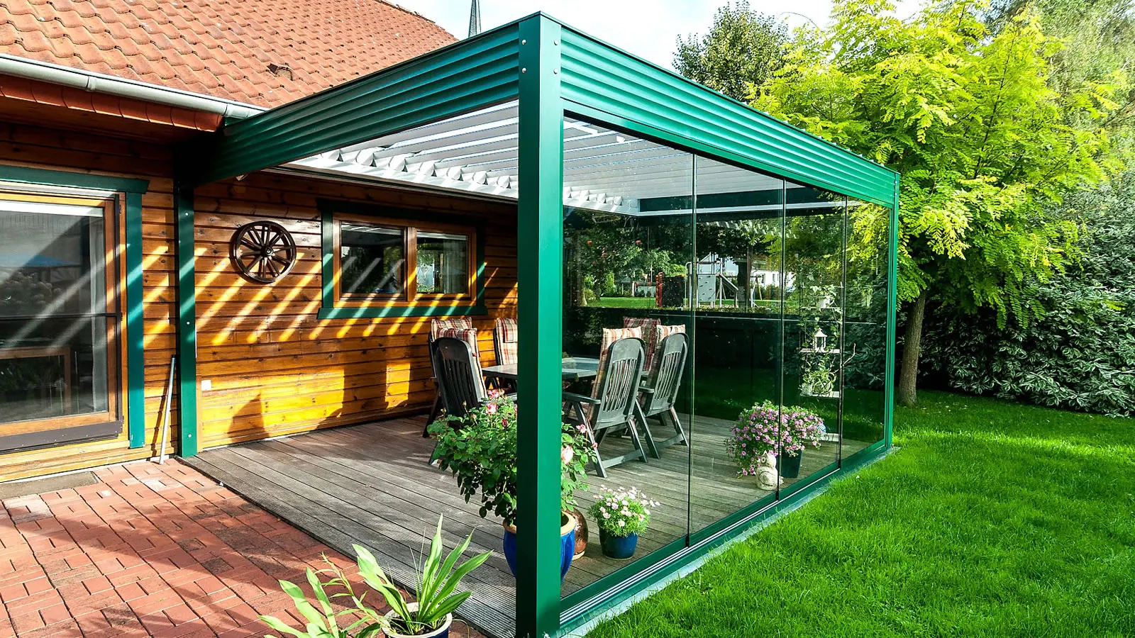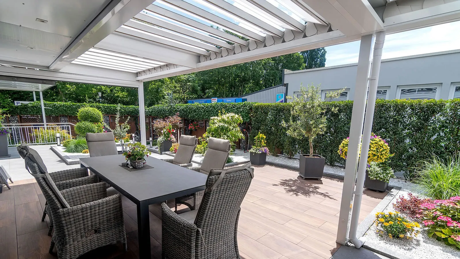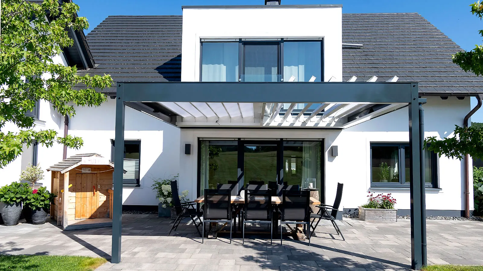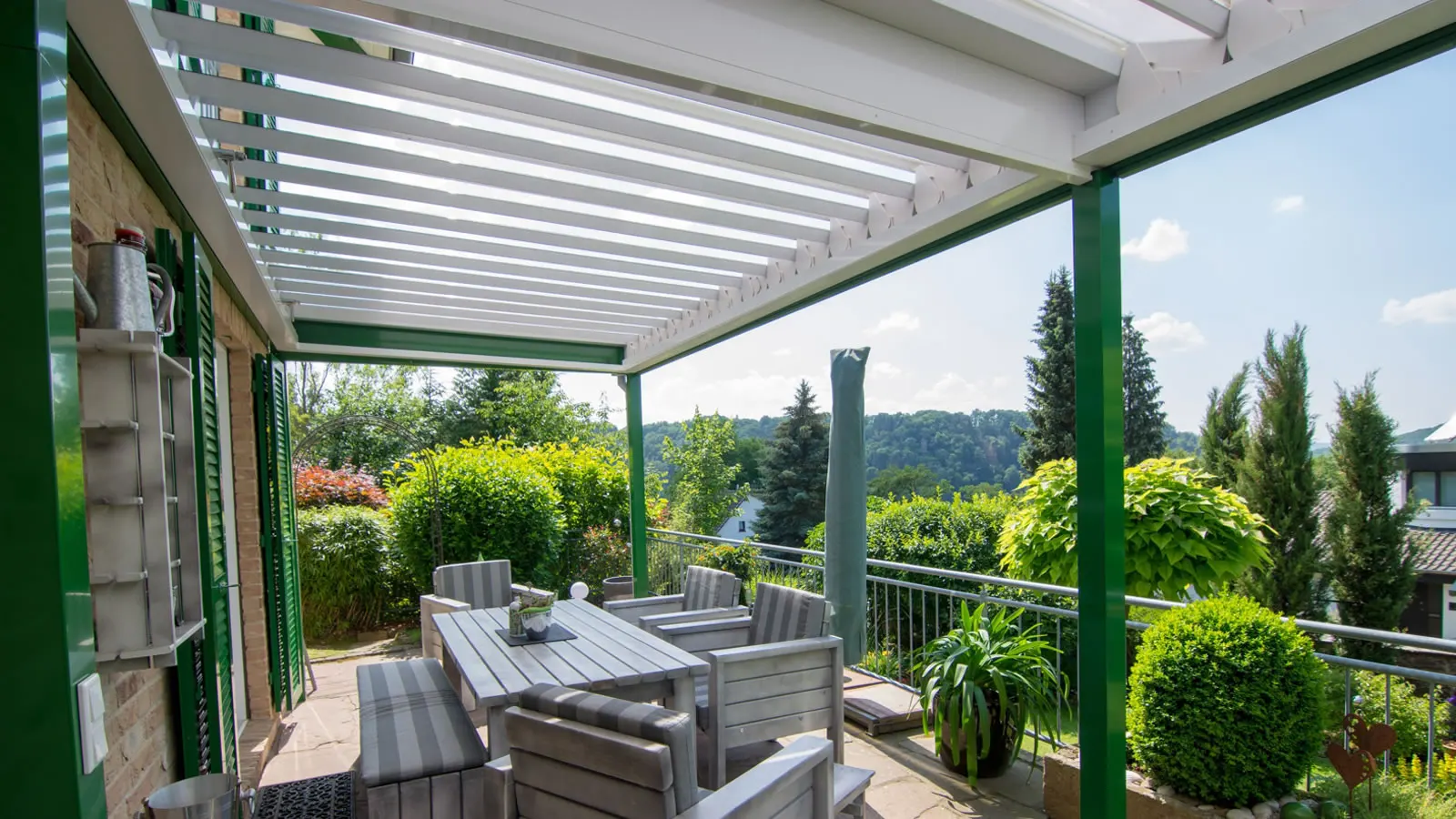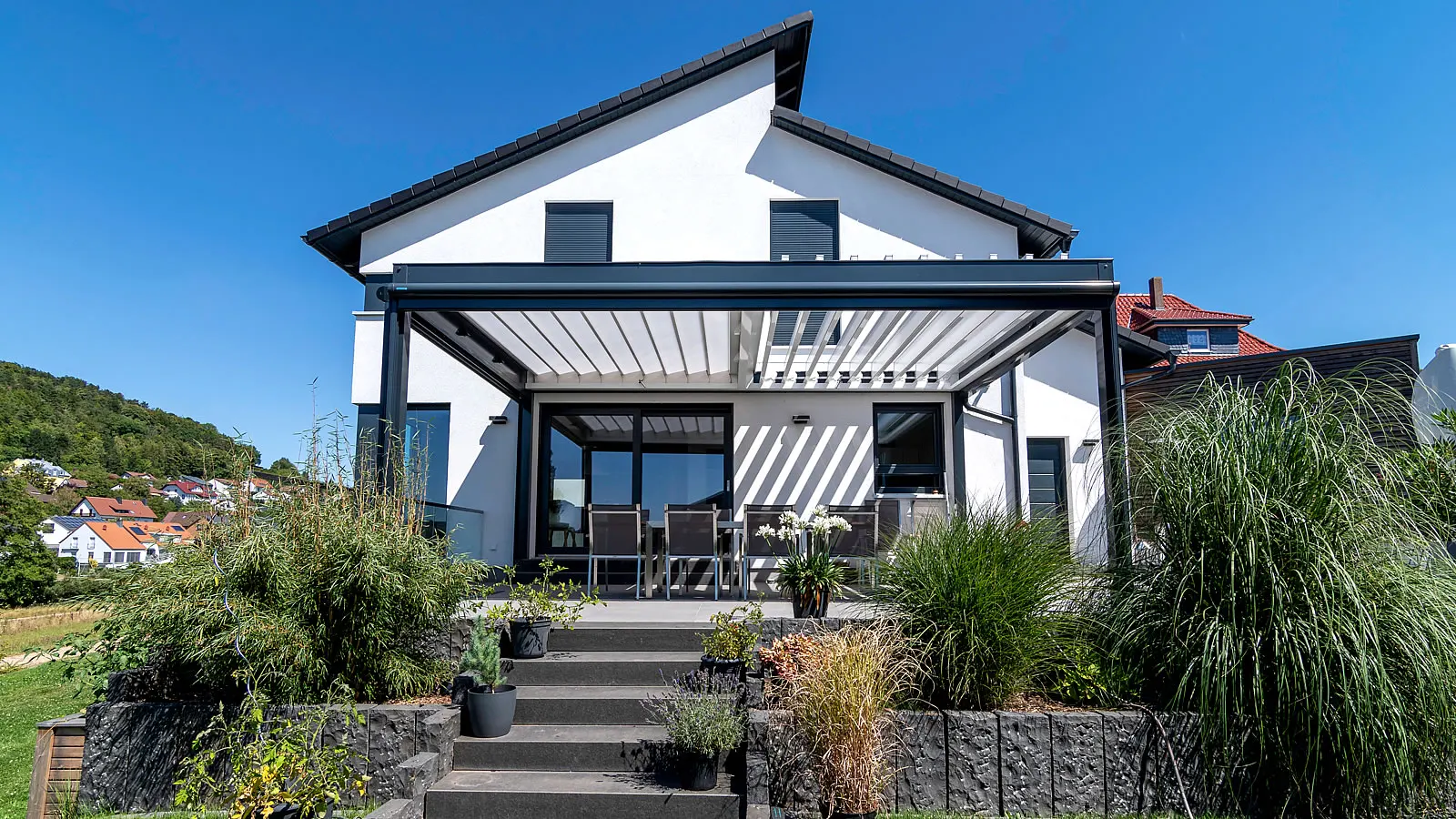 Ein winterfestes Lamellendach ist 12 Monate im Jahr nutzbar.