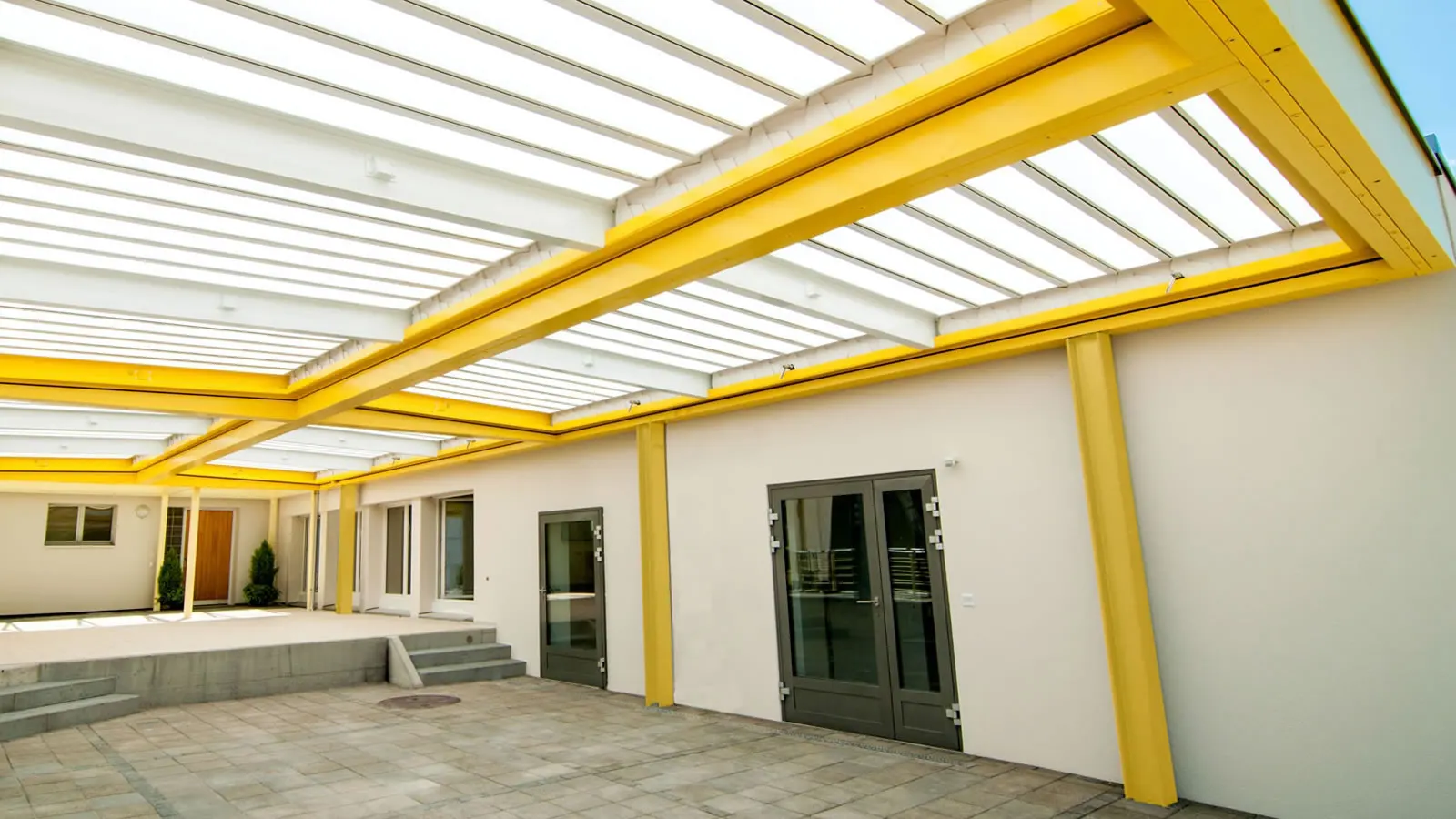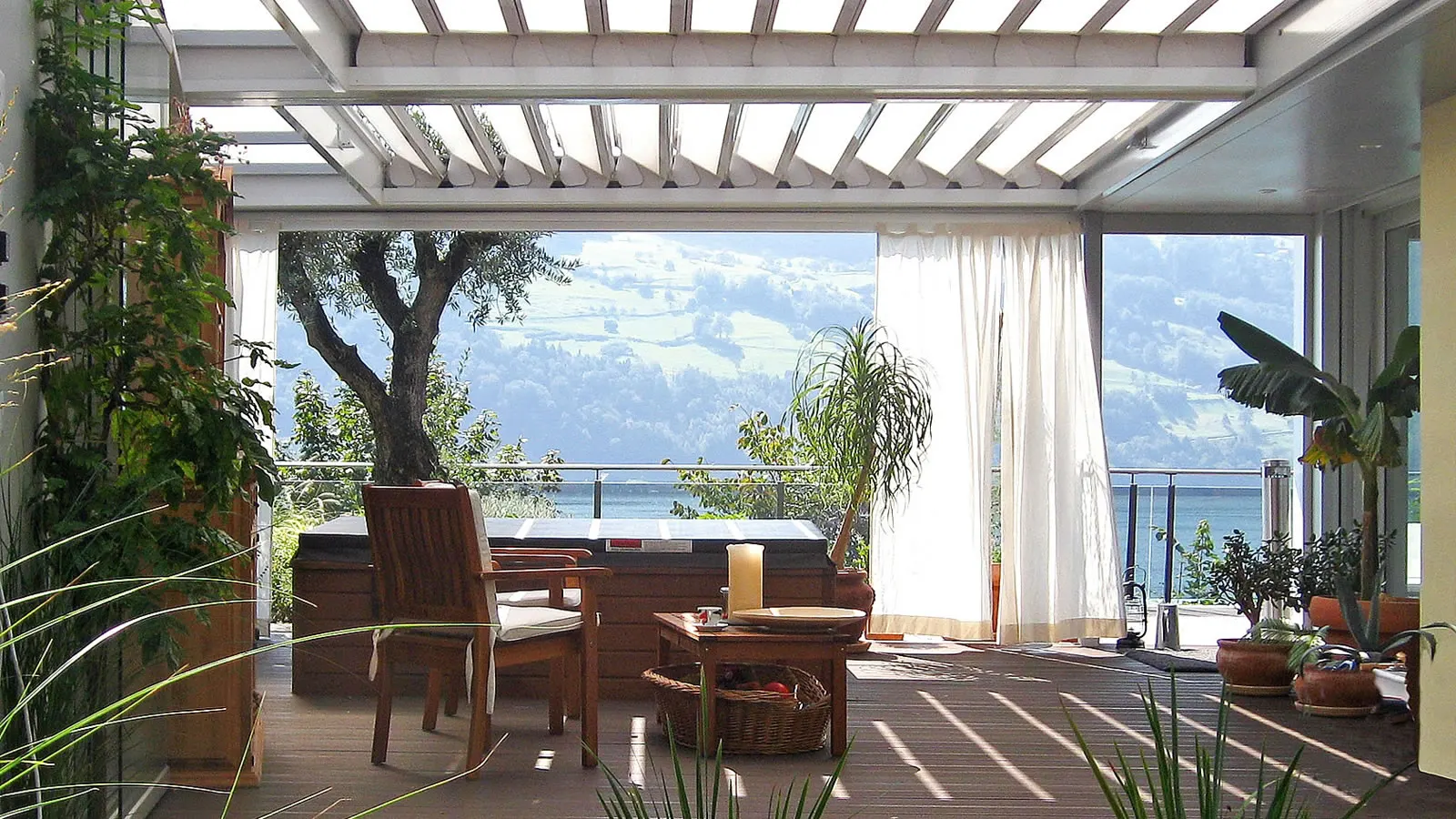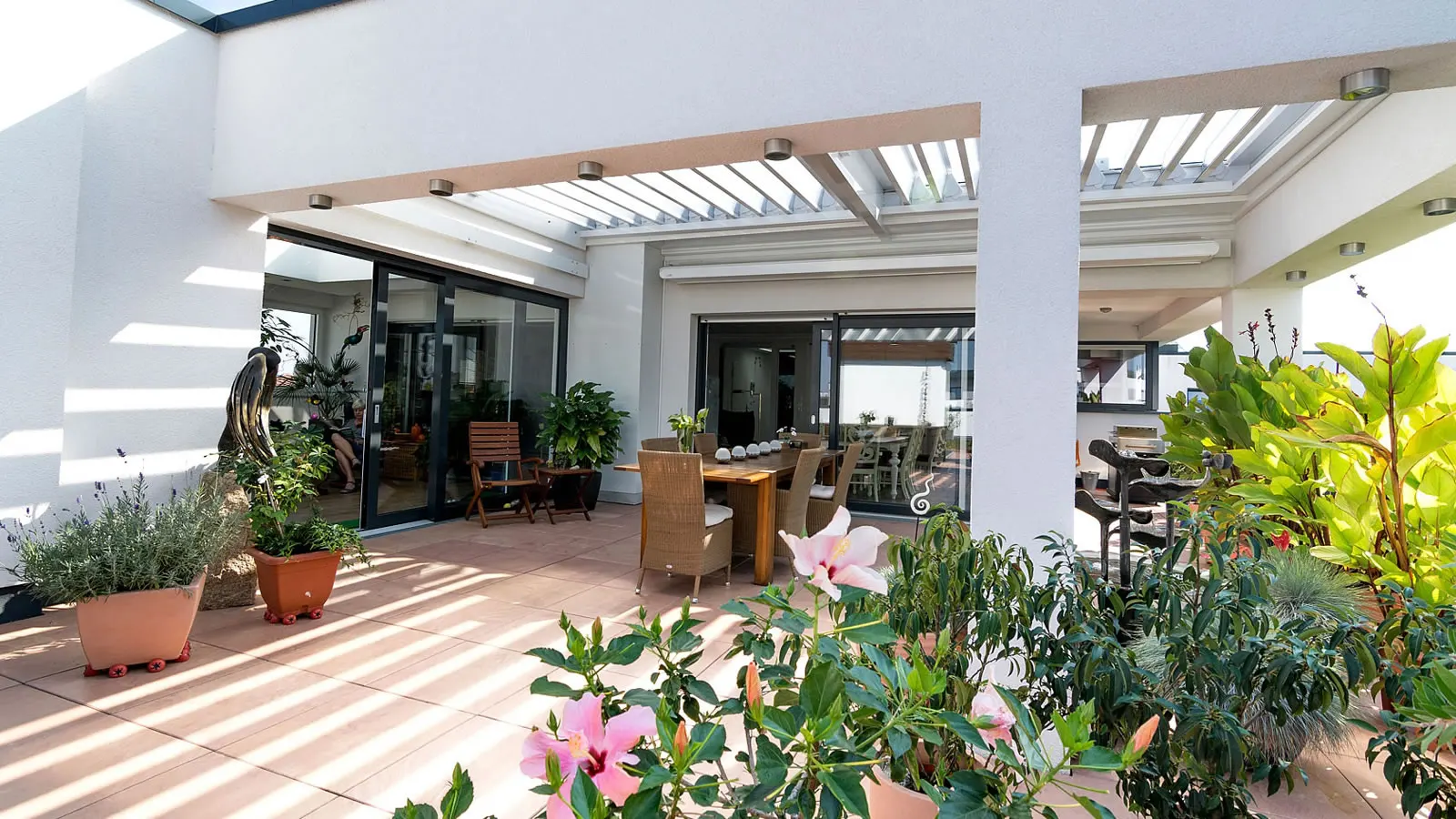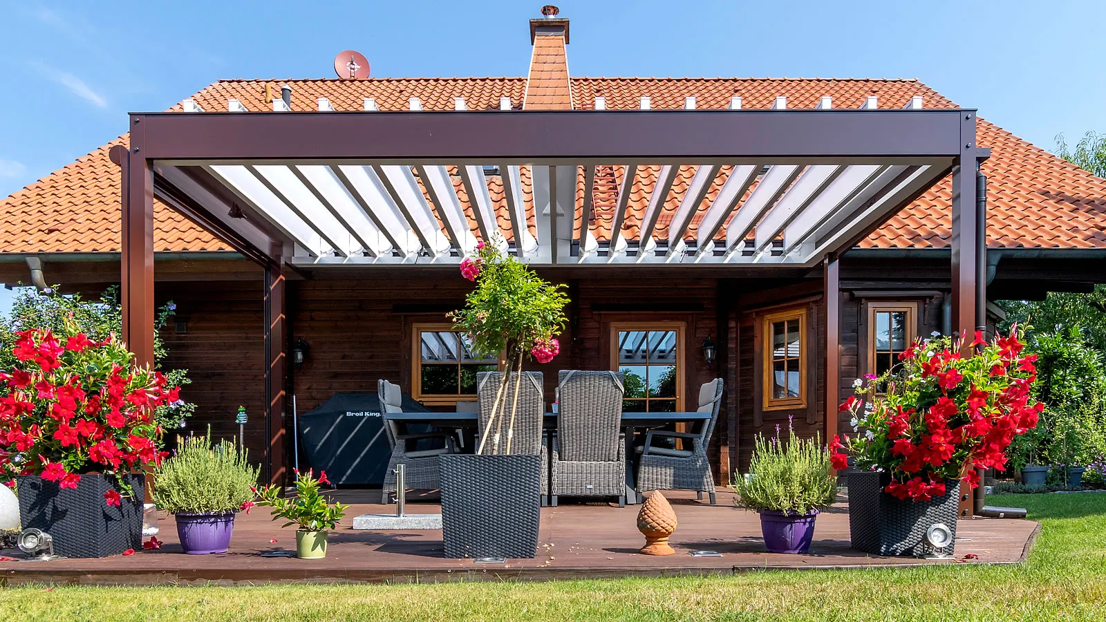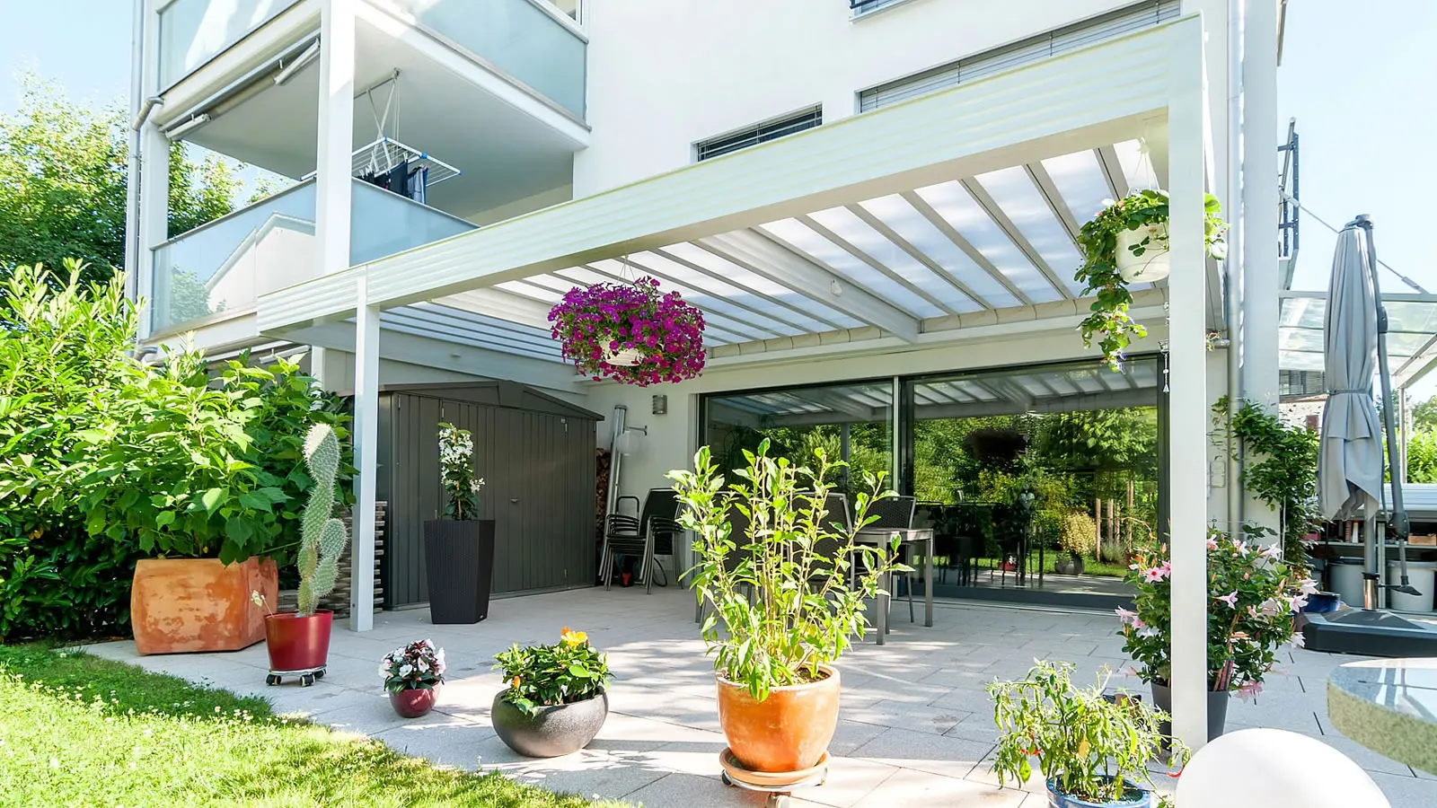 Ein winterfestes Lamellendach ist 12 Monate im Jahr nutzbar.