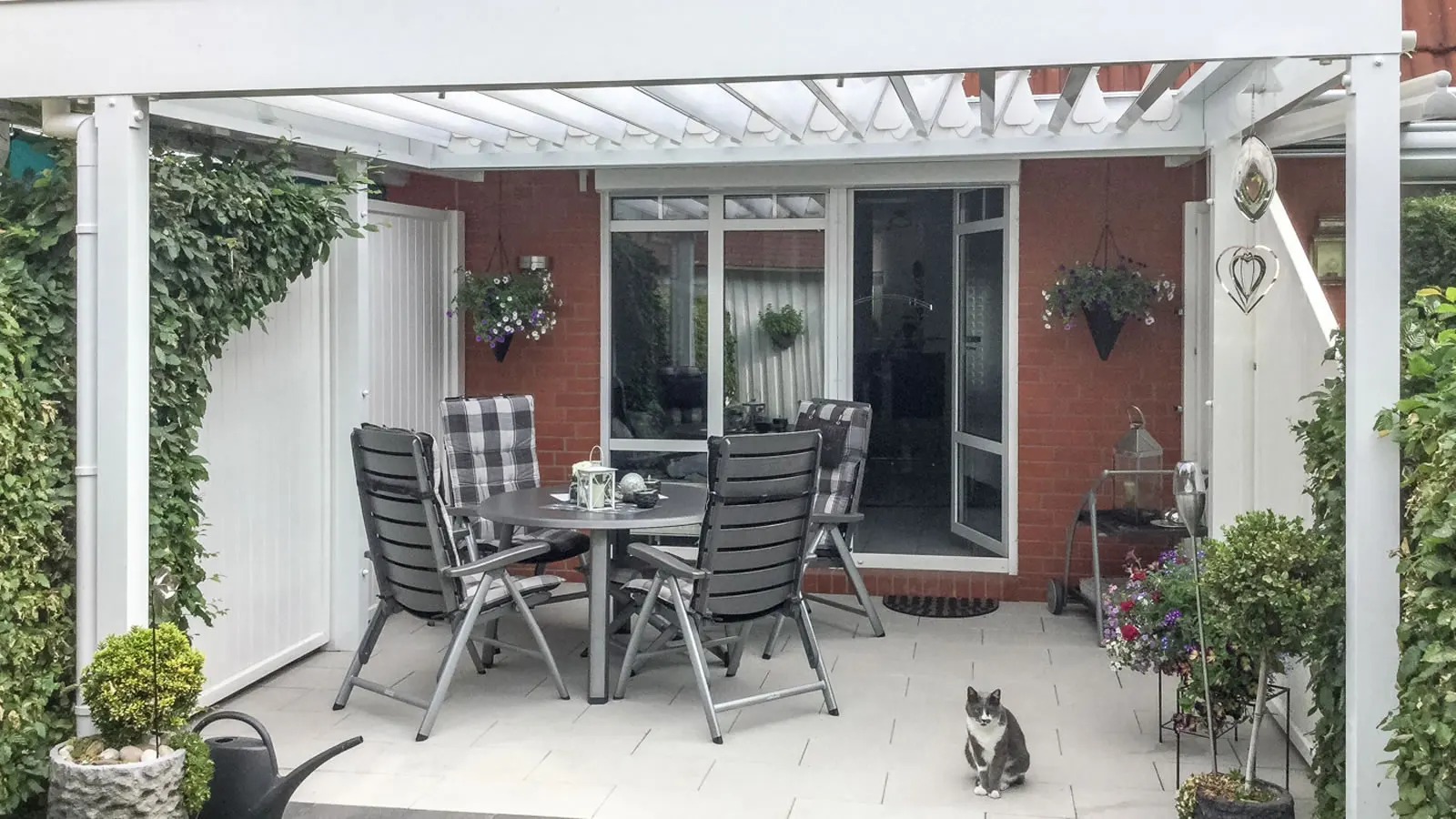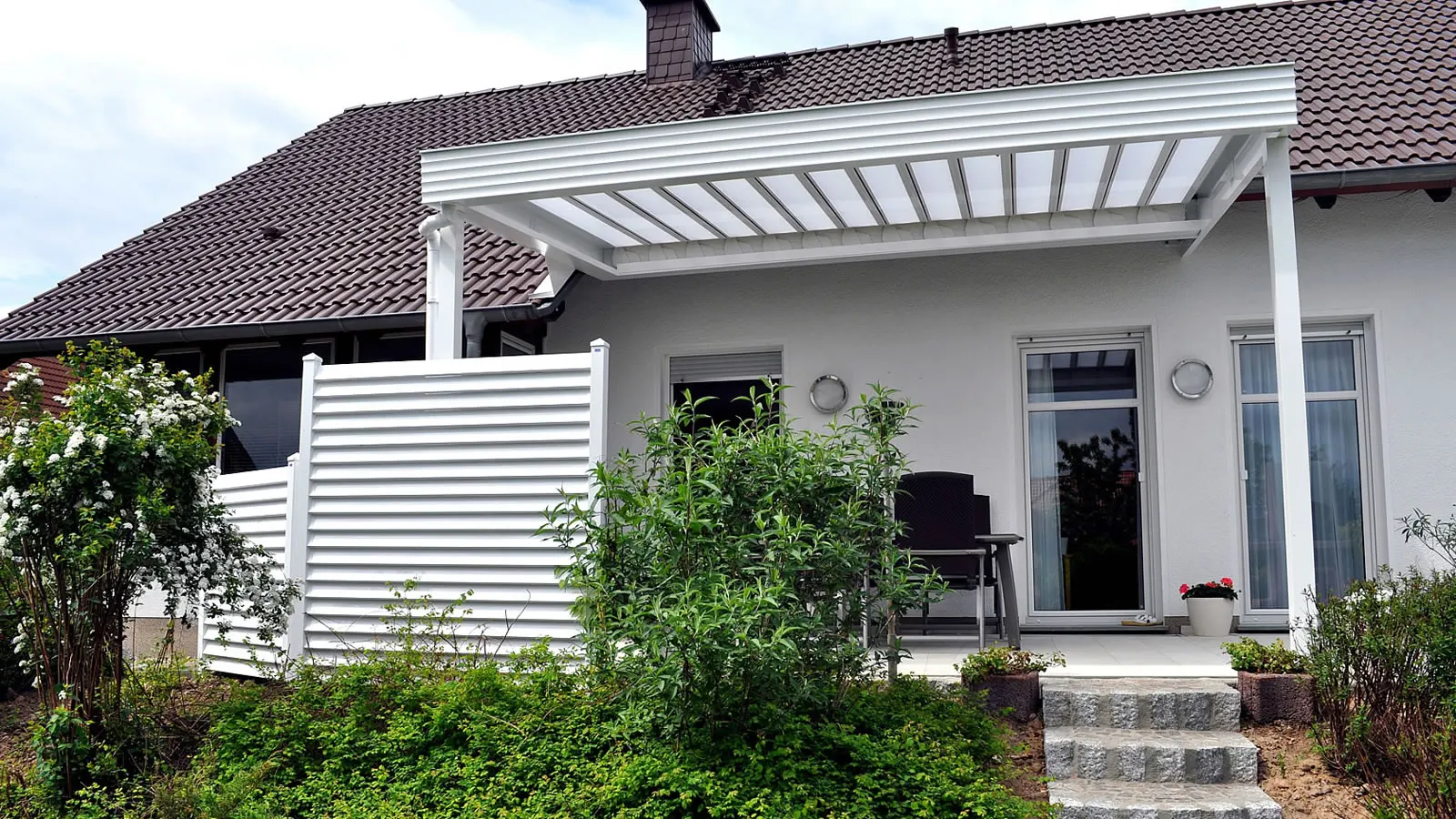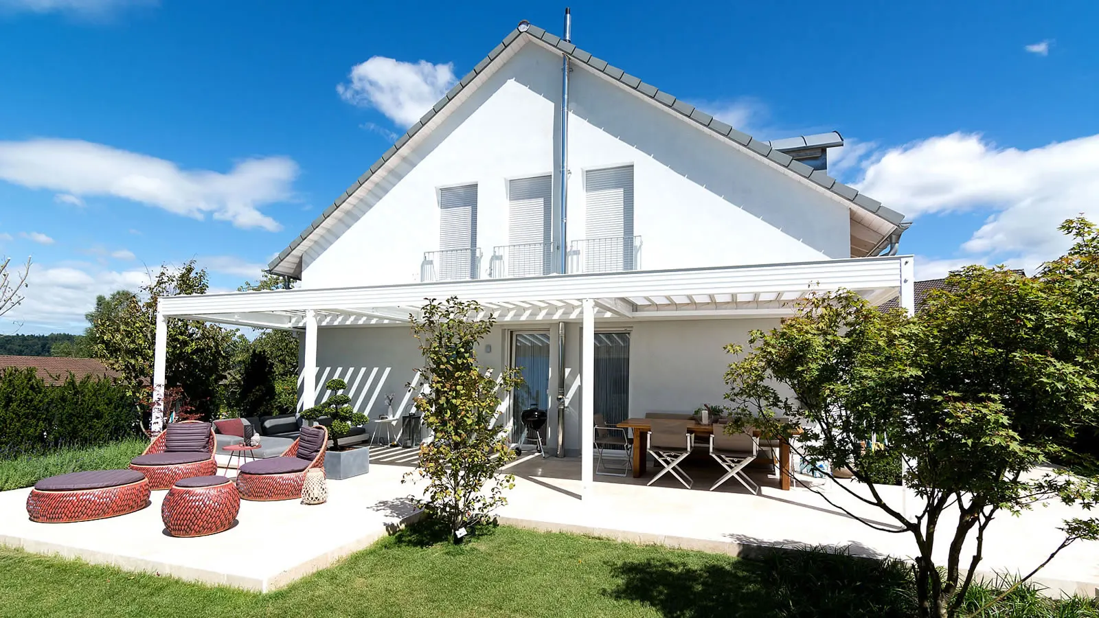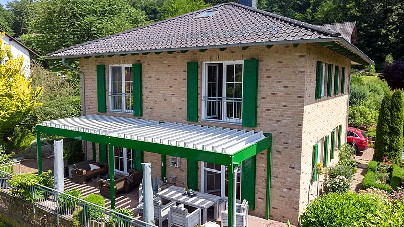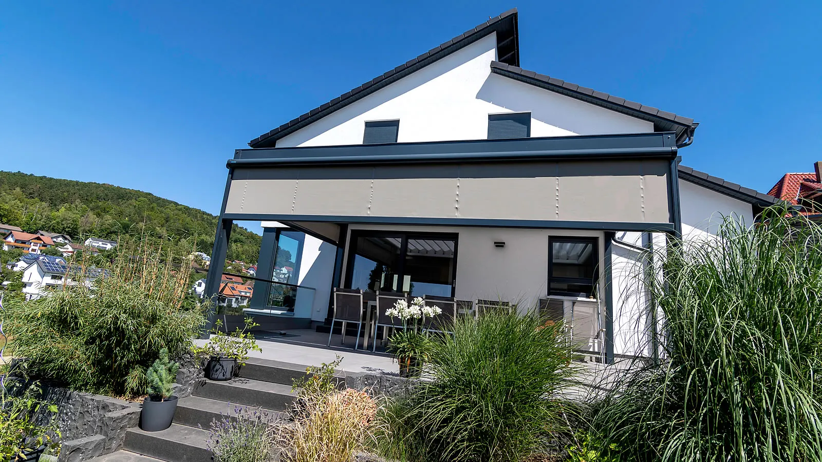 Die Terrassenüberdachung können wir gerne farblich passend zum Haus gestalten.