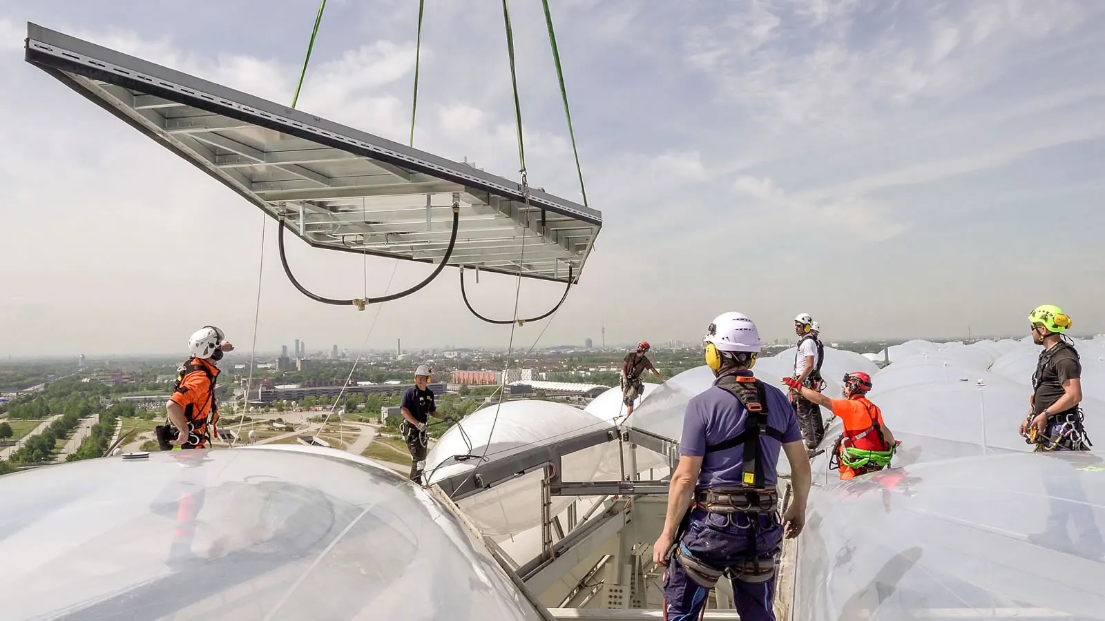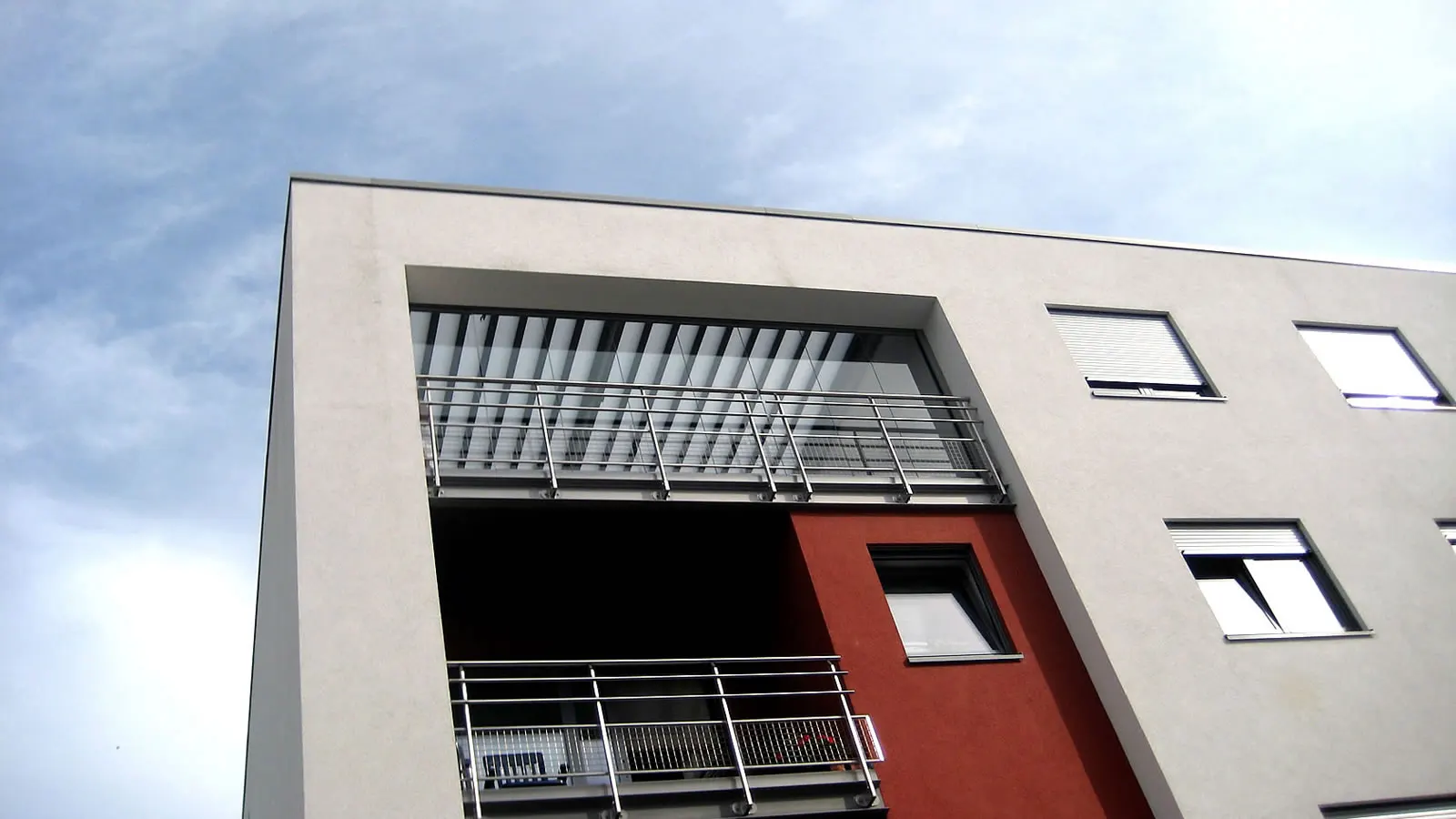 Durch die teiltransparenten Lamellen wird die Sonne abgeblendet.