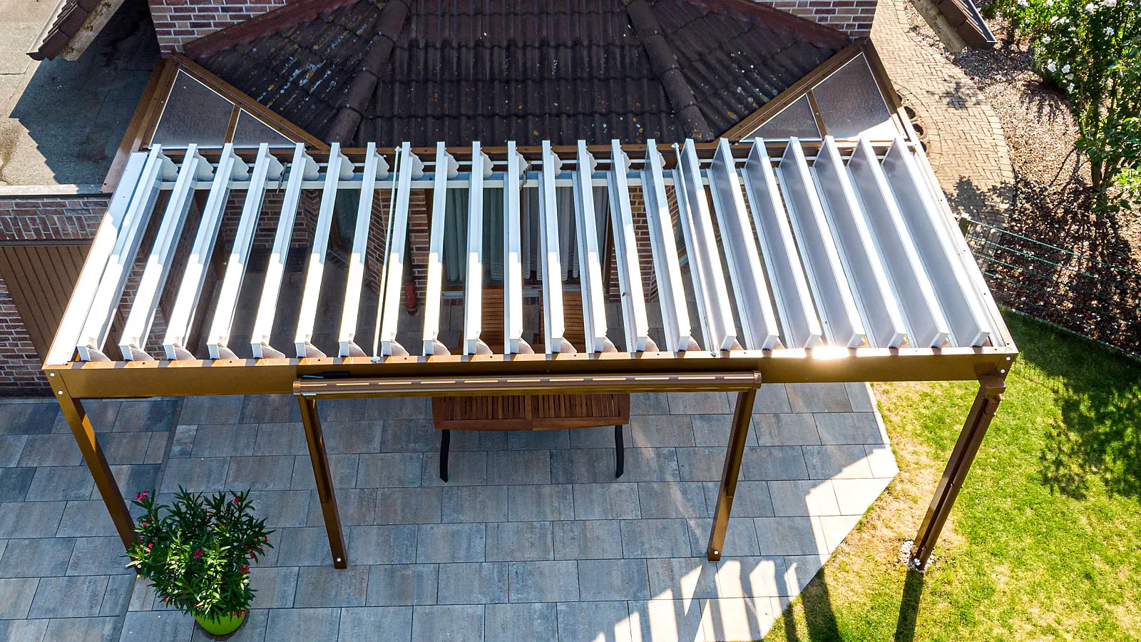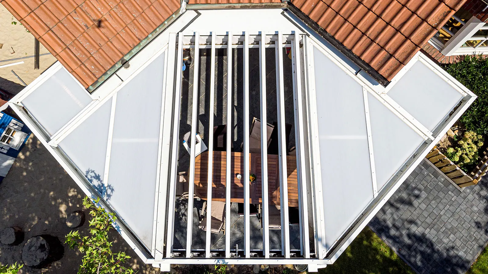 Ansicht von oben - Das Lamellendach wurde angepasst an die bauseitige Dachneigung.