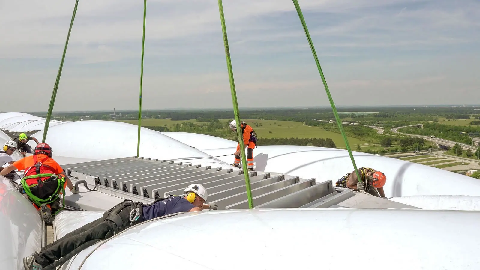 Perfekt montiert - Ein Lamellendach an der Allianz Arena in München.