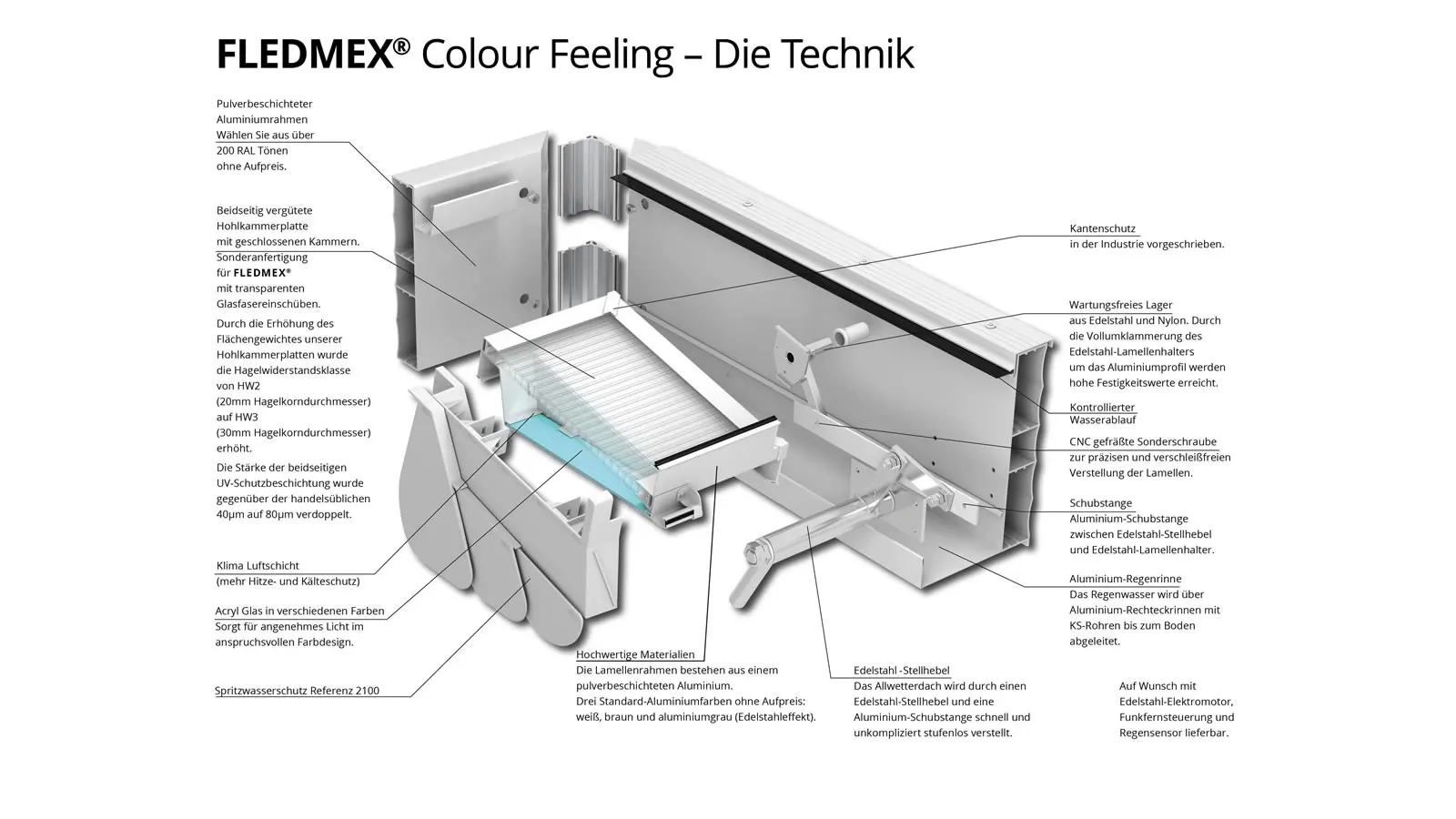 - Oberlamelle aus hagelfester (HW3) Hohlkammerplatte. Mehr Infos