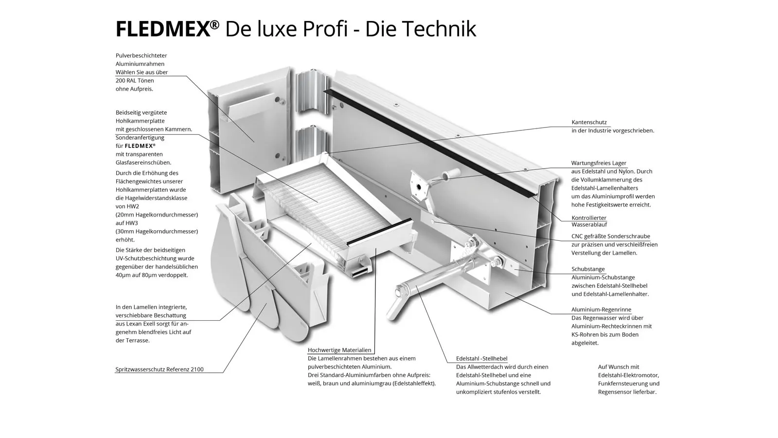 - Optimale Entwässerung und Selbstreinigung des Lamellendachs durch Schrägstellung der Lamelle. Mehr Infos